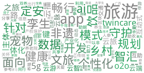 进一步通过图云变换分析学生项目文本关键词,可以明显看出,未修课者更侧重于“app设计”“交互体验”等业务性内容,而修读本课程的学生在项目中则频繁使用“智能”“驱动”“智慧”“赋能”“优化”等结构性词汇(如图4、5所示)。这一变化表明,课程有效引导学生从关注“操作界面”向思考“数据结构”与“系统逻辑”跃迁,其思维方式正由“业务逻辑”转向“数据逻辑”,体现出课程在推动学生数据素养深层转型方面的积极成效。